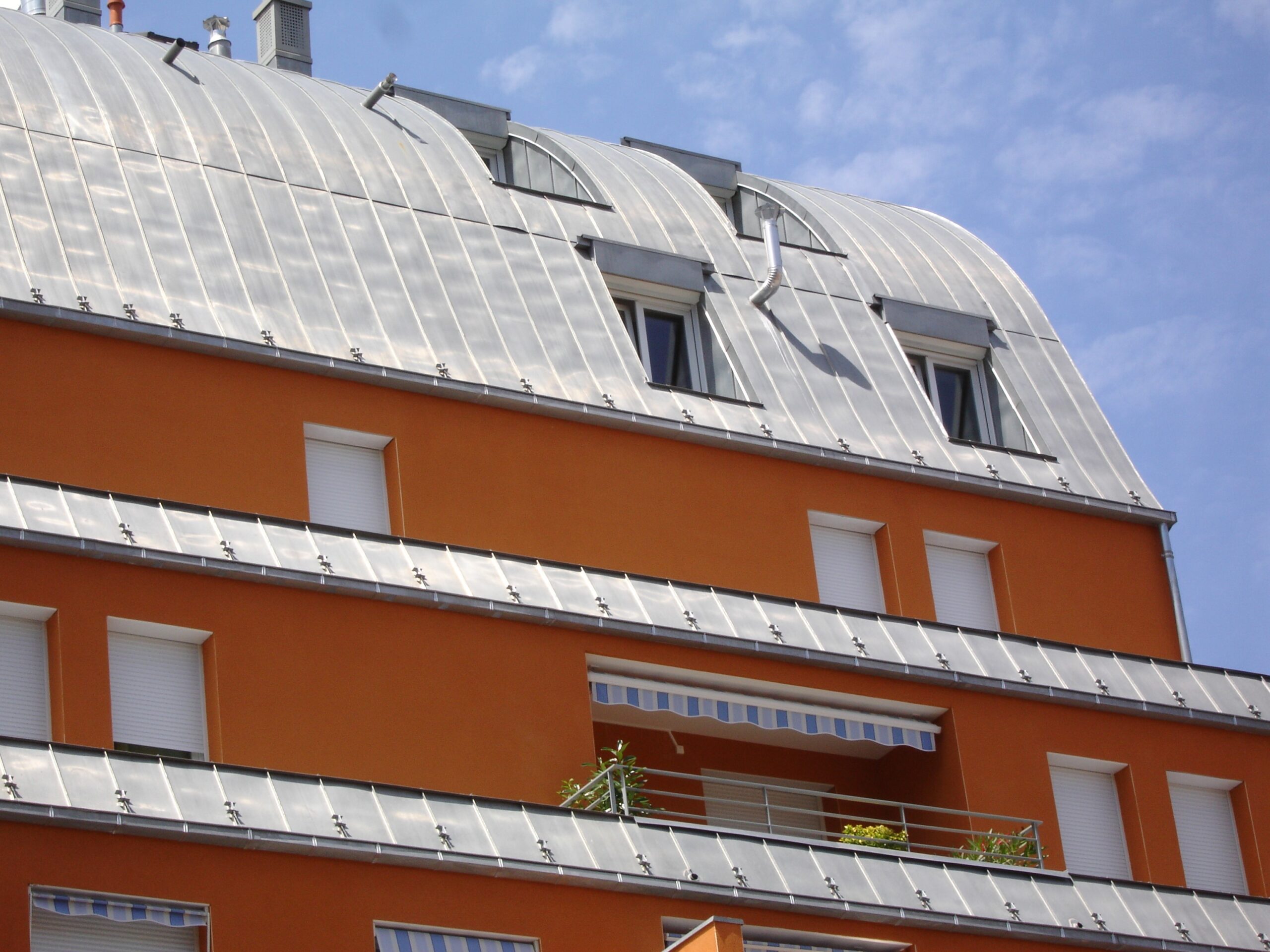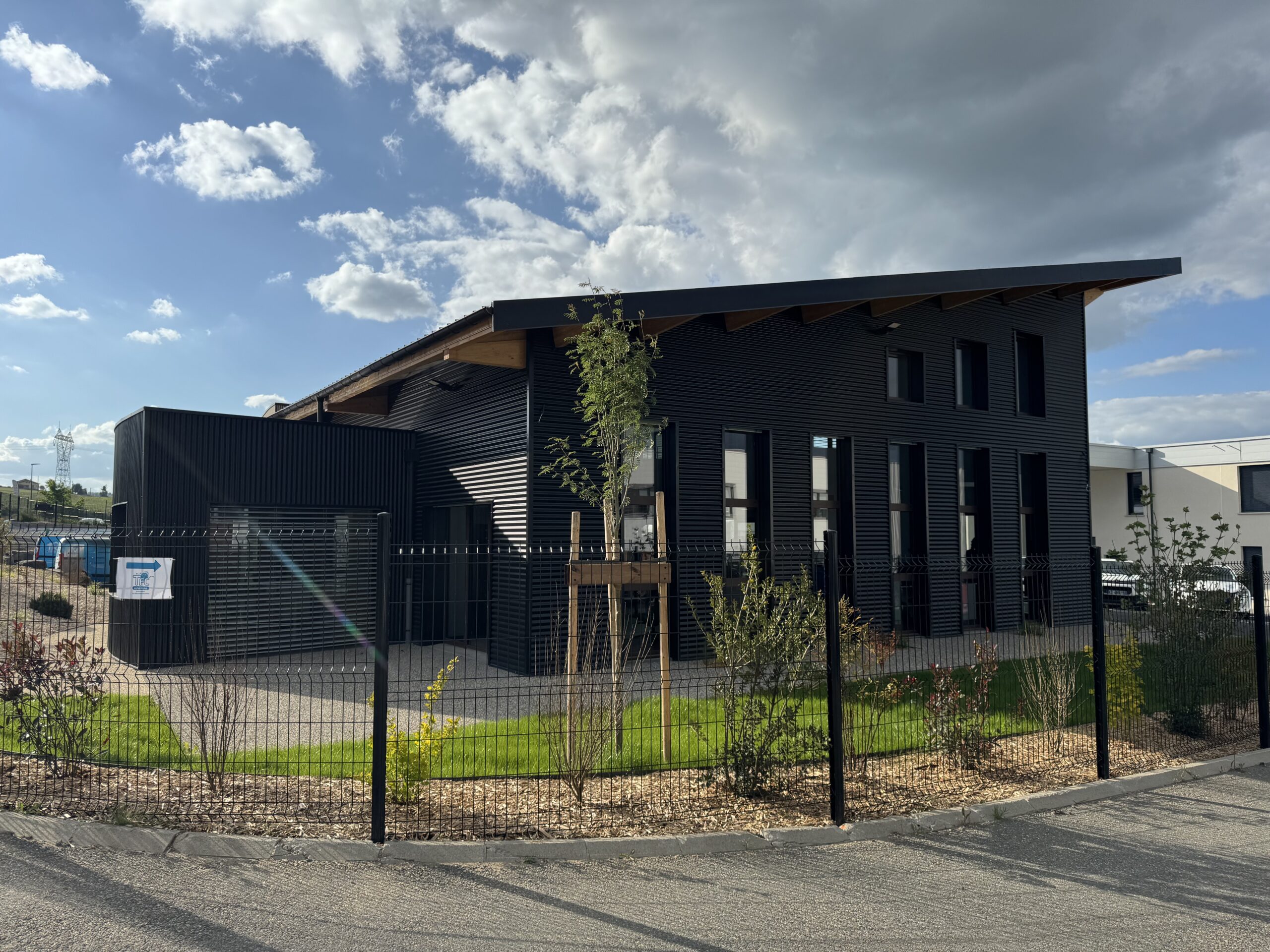 - Bardage & Finitions : bardage bois douglas saturé couleur « titane », habillage aluminium, pare-vapeur, gouttières et descentes en zinc.