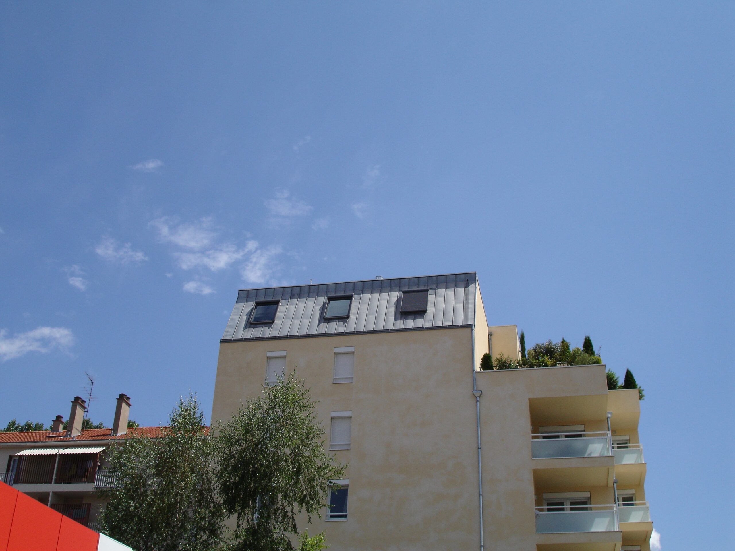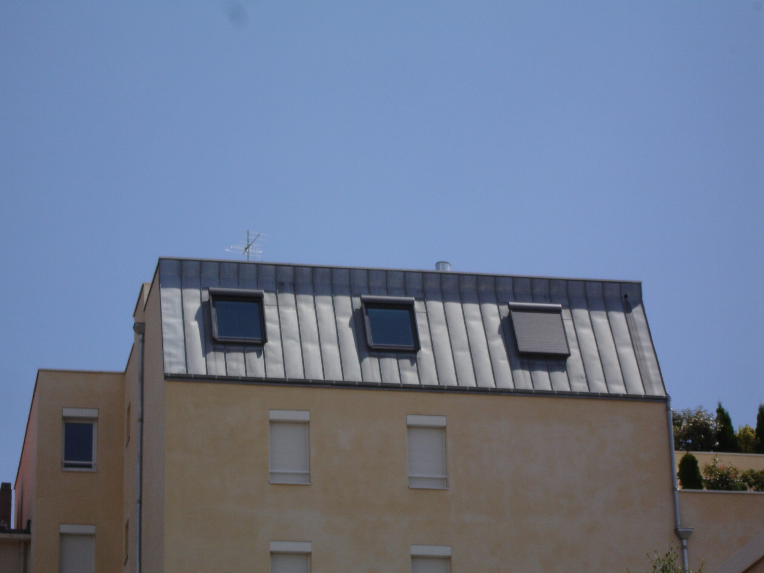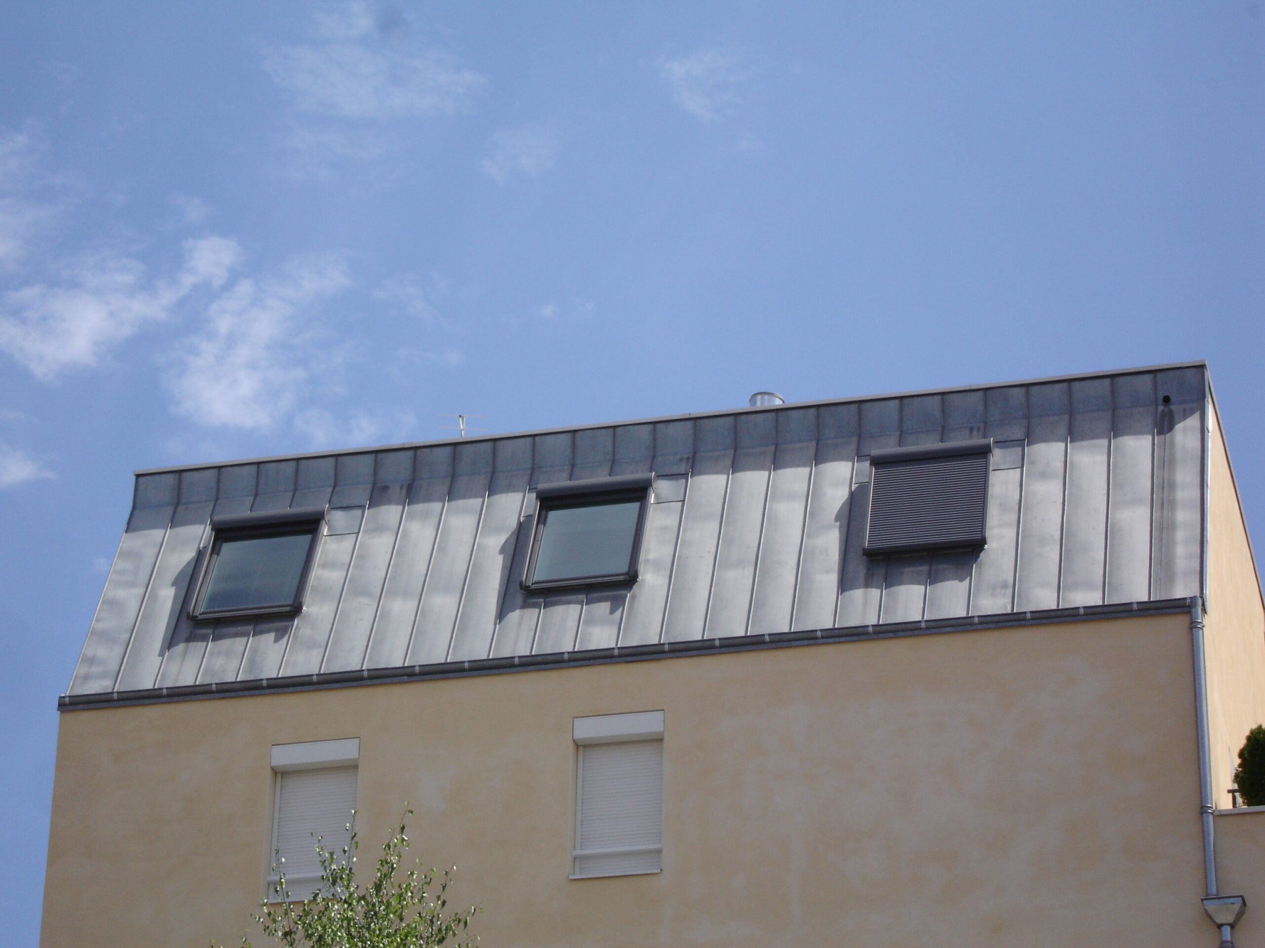 - Bardage & Finitions : bardage bois douglas saturé couleur « titane », habillage aluminium, pare-vapeur, gouttières et descentes en zinc.